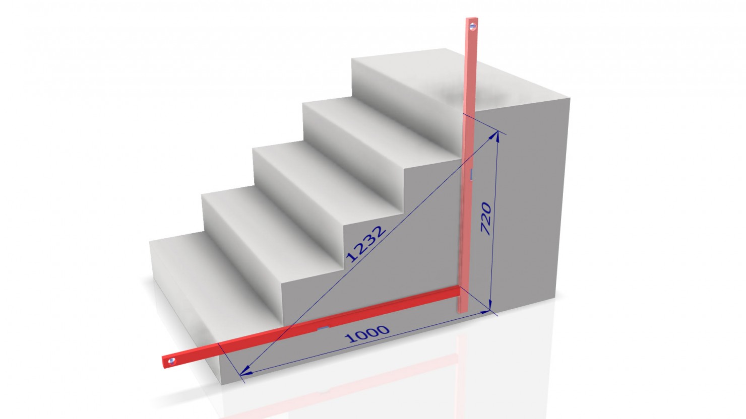 A lépcső csúcsait összekötő átlós méretre csak ellenőrzés céljából van szükség. Ez segít visszaigazolni, hogy a vízszintes és függőleges mérések helyesek, de a szög számításához nem szükséges.